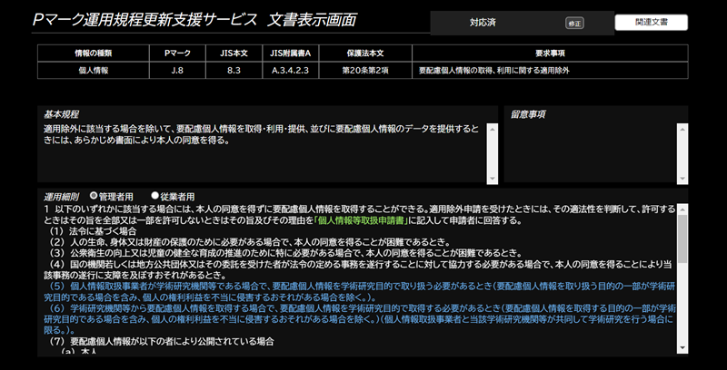 個人情報保護法、Pマーク審査基準に準拠した差分規定を提供します。